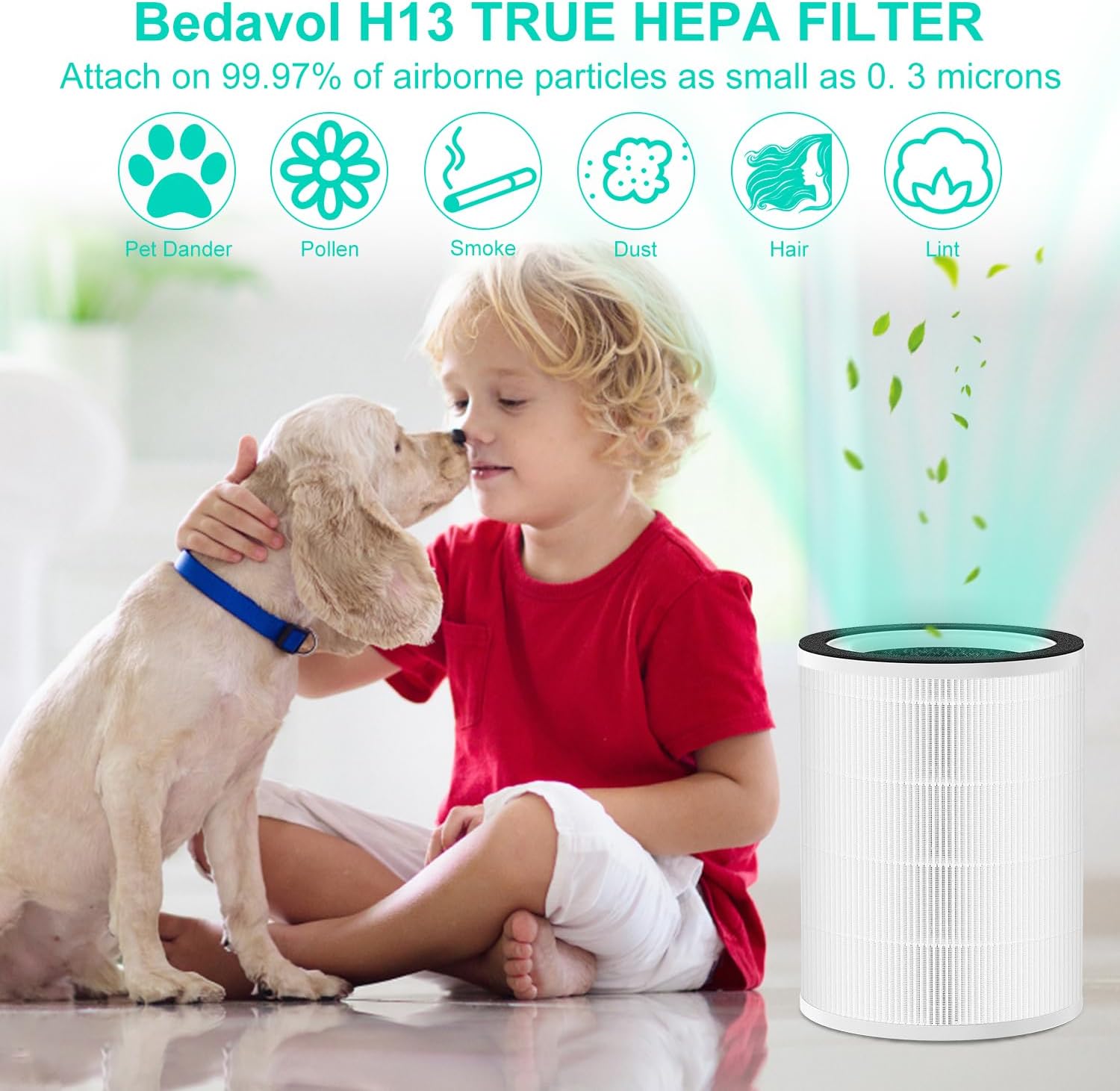 - 【Premium Filter】: Our KILO replacement filter is designed in H13 True HEPA Filter, with an H13 True HEPA filter that helps absorb airborne particles as small as 0.3 microns, up to 99.97% efficiency, and an activated carbon filter that helps tackle unpleasant odors and gases. It's an ideal choice for smokers, pet owners, pregnant women, allergy sufferers, or those with open-style kitchens at home, making it easy to improve your air quality and ensure you breathe comfortably and safely at home.